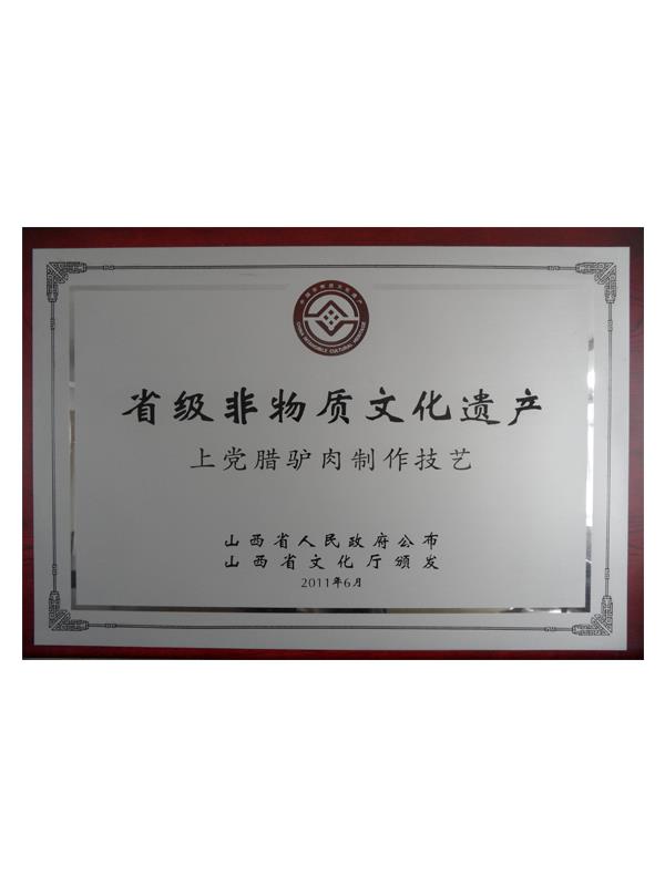 《本草綱目》第五十卷記載有:“驢肉味甘、無毒、解心煩、止風(fēng)狂、能安心氣、補(bǔ)血益氣、治遠(yuǎn)年勞損”的作用,尤其對失眠、健忘、眩暈、營養(yǎng)不良、貧血癥有獨(dú)特療效。上黨臘驢肉是山西長治市的漢族傳統(tǒng)名吃,其肉質(zhì)肥而不膩、瘦而不柴、香味四溢、回味無窮。早在明代,臘驢肉就已馳名于上黨和晉南地區(qū),產(chǎn)品遠(yuǎn)銷北京、天津、南京等南北名城。臘驢肉與當(dāng)?shù)氐臎龇邸⑺只馃环Q為潞安府(長治古稱潞安府)三寶。